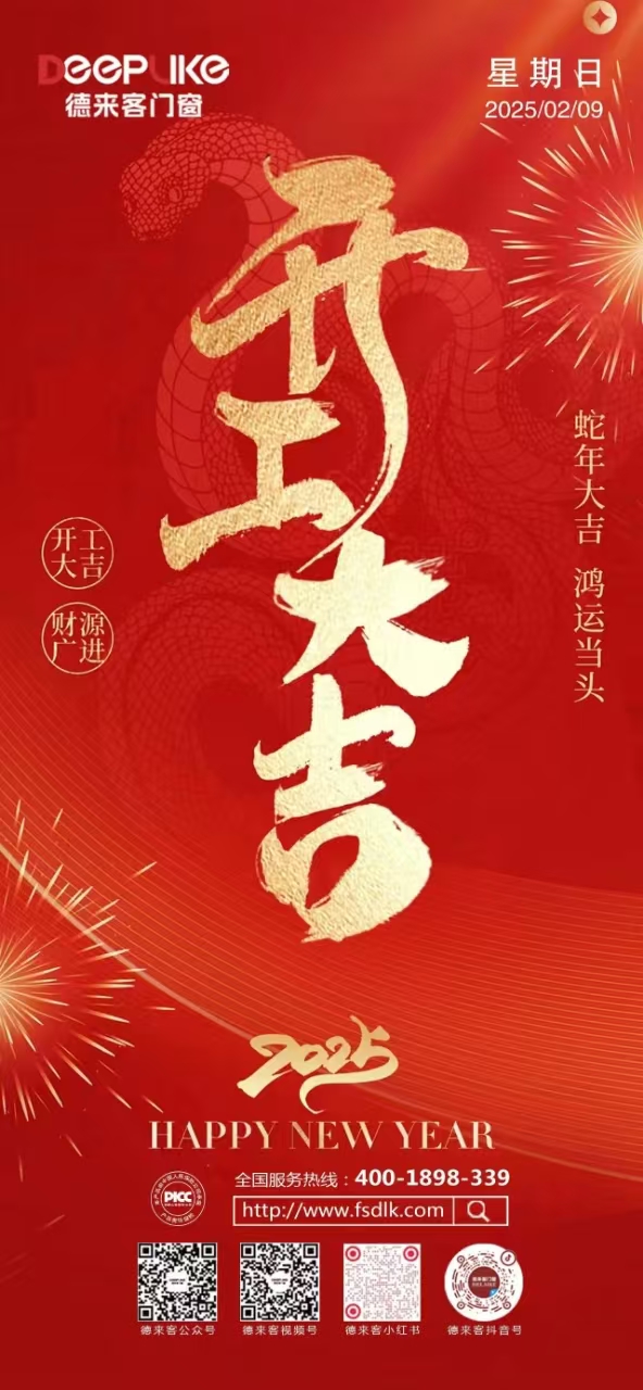 新年伊始,萬象更新!值此開工之際,德來客門窗攜全體同仁向新老客戶致以誠摯的祝福:愿您歲歲平安、家業(yè)興旺,新的一年與美好生活“窗”聯(lián)!